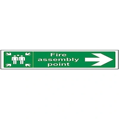 V Safety Eco Friendly Fire Assembly Point Arrow Right 300 x 100 mm Sign