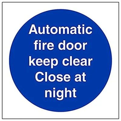 V Safety Eco Friendly Fire Door & Mandatory Auto. Keep Clear Close At Night 100 X 100mm