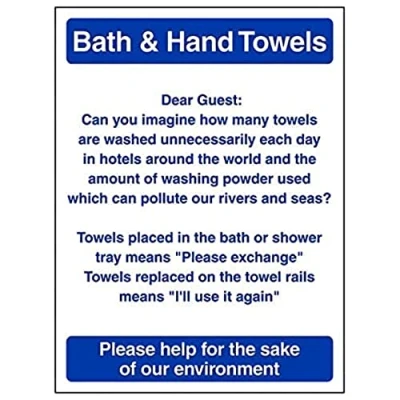 V Safety Eco Friendly Mandatory General Bath and Hand towels 150 x 200 mm Sign