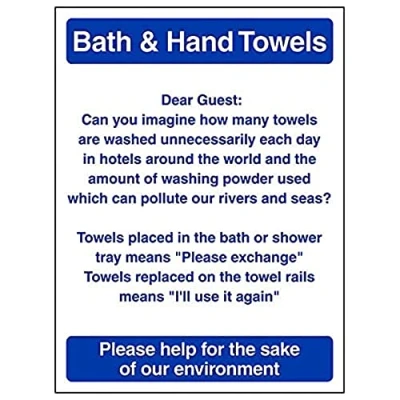 Ideal for use in hotels and B&Bs; clearly displays information to guests Display simple information in an effective way - quickly and easily Conforms to EN ISO 7010:2012 Great value & very durable - manufactured from either 100% Recycled High Impact Polystyrene (HIPS) or self-adhesive coala paper stick Easy to apply - both sign types come with their own adhesive which is suitable for smooth, non-porous surfaces. 100% Recycled High Impact Polystyrene (HIPS) signs can be fixed to other surfaces using screws (not supplied)