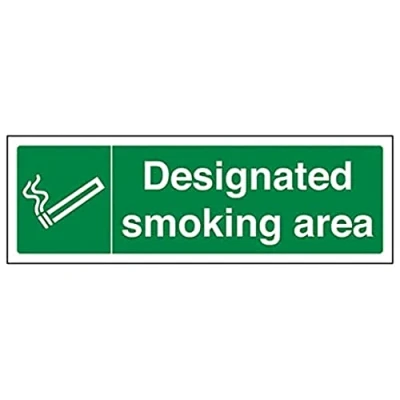 Inform staff and visitors of areas where smoking is allowed on your premises Help to ensure your staff and visitors are adequately protected at all times Conforms to EN ISO 7010:2012 Great value & very durable - manufactured from either 100% Recycled High Impact Polystyrene (HIPS) or self-adhesive coala paper stick Easy to apply - both sign types come with their own adhesive which is suitable for smooth, non-porous surfaces. 100% Recycled High Impact Polystyrene (HIPS) signs can be fixed to other surfaces using screws (not supplied)