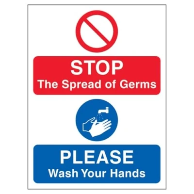 V Safety Eco Friendly Stop The Spread Of Germs 150 x 200mm 1mm 100% Recycled Rigid Plastic Sign