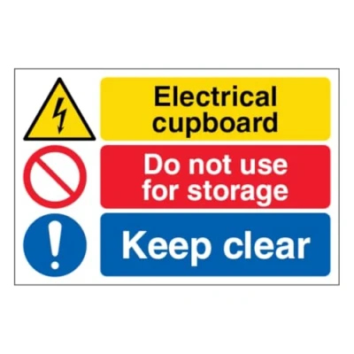 Provides vital information regarding the danger of electricity, and where electrical hazards/equipment is stored Clear and easy to understand – multi-messages ensure people are aware of restricted or prohibited access Complies with the Health and Safety (Safety Signs and Signals) Regulations 1996. Conforms to EN ISO 7010 Highly durable – made from either durable rigid plastic or self-adhesive flexible vinyl