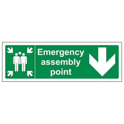V Safety Emergency Assembly Point Arrow Down 450 x 150 mm 2mm Rigid Plastic Sign