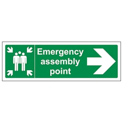 V Safety Emergency Assembly Point Arrow Right 300 x 100 mm 2mm Rigid Plastic Sign