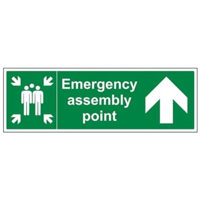 V Safety Emergency Assembly Point Arrow Up 900 x 300 Self Adhesive Vinyl Sign