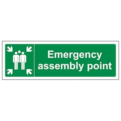 V Safety Emergency Assembly Point Landscape 450 x 150 mm 2mm Rigid Plastic Sign