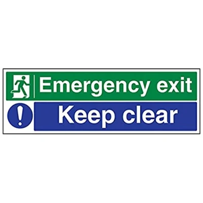Helps to fulfil legal obligations to inform of the direction in which safety can be reached as per Health and Safety (Safety Signs & Signals) Regulations 1996 Conforms to EN ISO 7010:2012 by featuring a green background with a white pictogram or text positioned centrally Landscape Orientation. Sign reads "Emergency Exit. Keep Clear" Highly durable Self Adhesive Vinyl material and screen printed message will stand the test of time Sign measures 600 x 200mm. Self Adhesive material will adhere securely to most surfaces