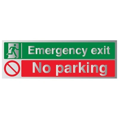 V Safety Emergency Exit/No Parking 300 x 100 mm Self Adhesive Vinyl Aluminium Effect Sign