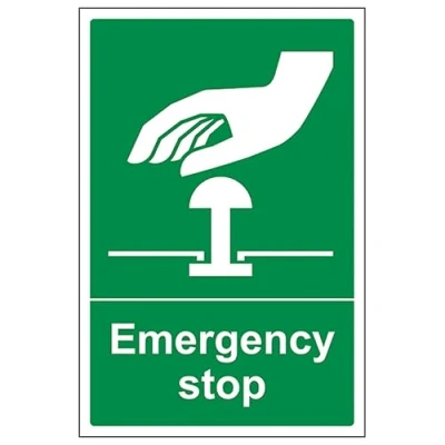 V Safety Emergency Stop Green 200 x 300mm 3mm Aluminium Composite Sign