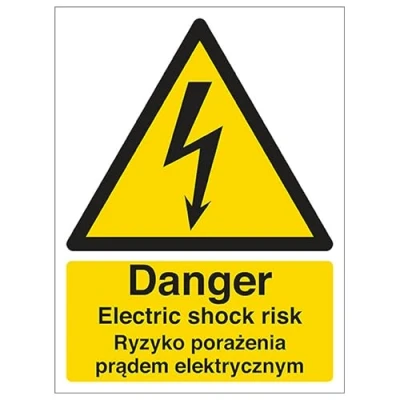 V Safety English/Polish Danger Electric Shock Risk 150 x 200 mm Glow In The Dark Self Adhesive Vinyl Sign