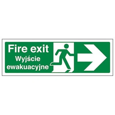 V Safety English/Polish Fire Exit Arrow Right 450 x 150 mm 2mm Rigid Plastic Sign