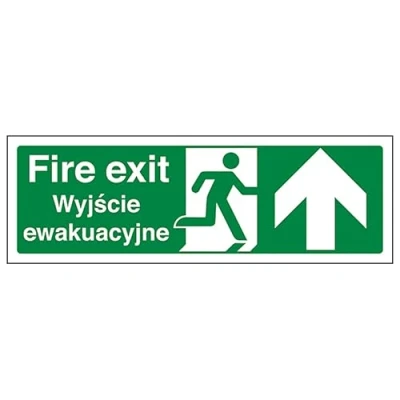 V Safety English/Polish Fire Exit Arrow Up 450 x 150 mm 2mm Rigid Plastic Sign