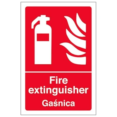 V Safety English/Polish Fire Extinguisher 150 x 200 mm 3mm Brushed Aluminium Composite Sign