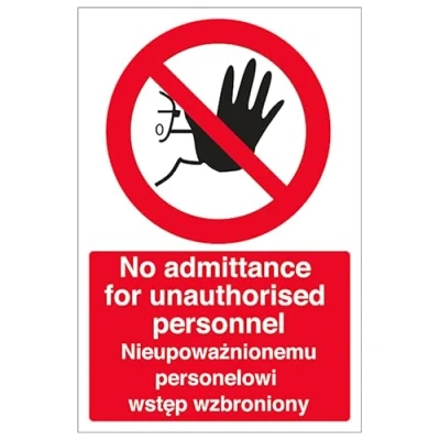 V Safety English/Polish No Admittance For Unauthorised Personnel 200 x 300 mm Self Adhesive Vinyl Aluminium Effect Sign