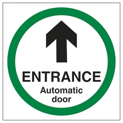 V Safety Entrance Automatic Door 150 x mm Glow In The Dark 1mm Rigid Plastic Sign