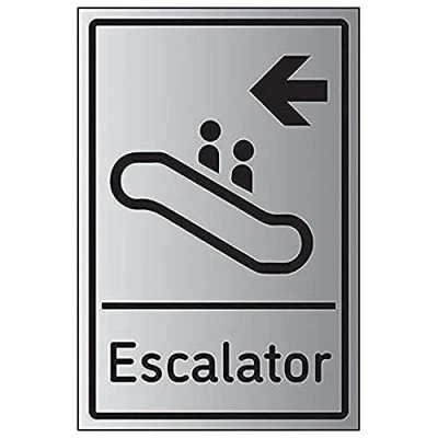 V Safety Escalator Arrow Left 200mm x 300mm 1.6mm Aluminium Effect Rigid Plastic