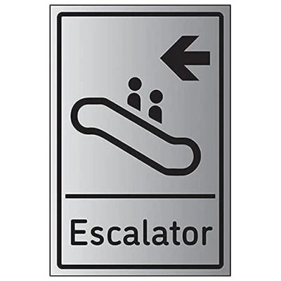 V Safety Escalator Arrow Left 200mm x 300mm Self Adhesive Aluminium Effect