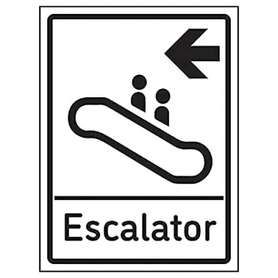 V Safety Escalator Arrow Left 200mm x 300mm Self Adhesive Vinyl