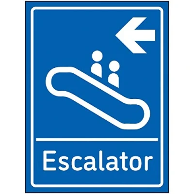 V Safety Escalator Arrow Left Sign 150x200mm Blue Self Adhesive Vinyl