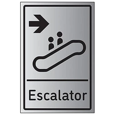 V Safety Escalator Arrow Right 150mm x 200mm 1.6mm Aluminium Effect Rigid Plastic