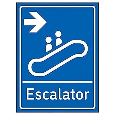 V Safety Escalator Arrow Right 200mm x 300mm Blue Self Adhesive Vinyl