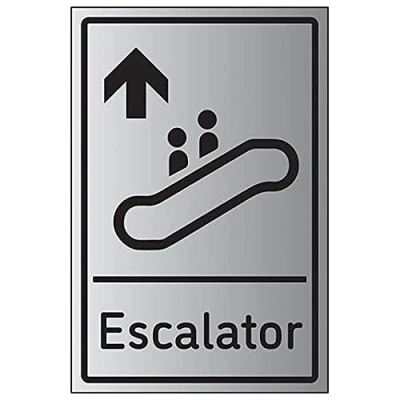 V Safety Escalator Arrow Up 200mm x 300mm 3mm Brushed Aluminium Composite