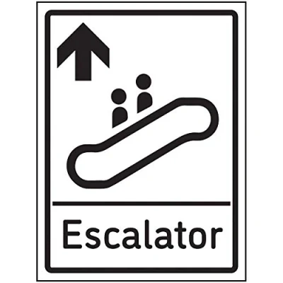 V Safety Escalator Arrow Up Sign 150x200mm Self Adhesive Vinyl