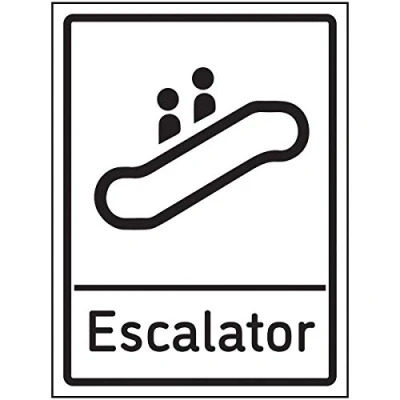 V Safety Escalator Sign 150x200mm Self Adhesive Aluminium Effect