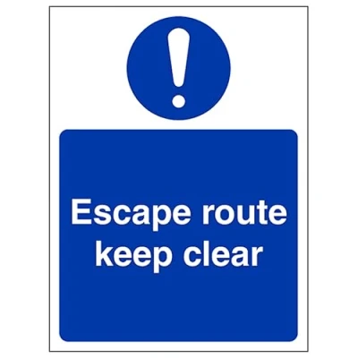 V Safety Escape Route Keep Clear Portrait 150 x 200 mm Self Adhesive Vinyl Aluminium Effect Sign