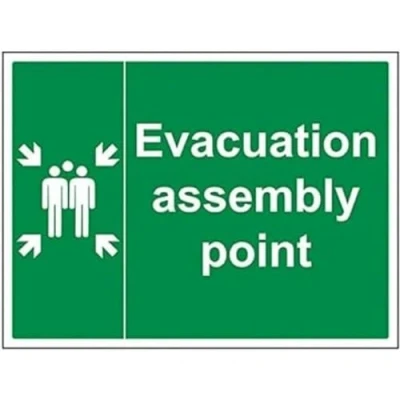 Helps to fulfil legal obligations to inform of the direction in which safety can be reached as per Health and Safety (Safety Signs & Signals) Regulations 1996 Conforms to EN ISO 7010:2012 by featuring a green background with a white pictogram or text positioned centrally Landscape Orientation. Sign reads "Evacuation Assembly Point" Highly durable Self Adhesive Vinyl material and screen printed message will stand the test of time Sign measures 400 x 300mm. Self Adhesive material will adhere securely to most surfaces