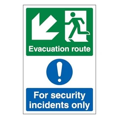 Guides Internal Evacuation in Security Situations – Points occupants toward designated safe zones during lockdown or invacuation events Supports Clear Wayfinding in High-Stress Moments – Helps maintain calm movement through corridors or stairwells during security-related threats Ideal for Schools, Offices & Public Buildings – Reinforces internal safety protocols where external evacuation is not appropriate Cost-effective self-adhesive vinyl, easy to apply on smooth surfaces without fixings, ideal for indoor use. Made in Britain members, based in Poole, Dorset. We use premium materials, ensuring durable and high-quality Safety Signs.