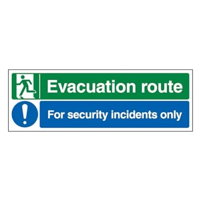 V Safety Evacuation Route Left/Security Incidents Only 450 x 150 mm 1mm Rigid Plastic Sign