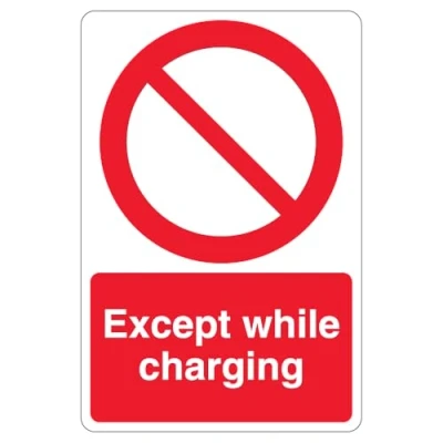 V Safety Except While Charging Prohibition Symbol 200 x 300mm 3mm Aluminium Composite Sign