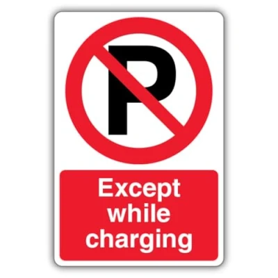 "No Parking Except While Charging" message: Displays a clear prohibition ‘P’ symbol to reserve parking spaces exclusively for vehicles actively charging, ensuring proper use of designated EV bays. ISO-compliant for safety: Assists organisations in meeting their obligations under the Health and Safety at Work Act by clearly marking restricted parking areas and enhancing site safety. Ideal for private properties and commercial spaces: Perfect for managing parking in electric vehicle charging zones at offices, residential complexes, and public car parks. Durable and weather-resistant design: Constructed with high-quality materials, ensuring the sign remains visible and effective even in harsh UK weather conditions. Bold, easy-to-read layout: The clear prohibition symbol and straightforward "Except While Charging" message make it easy for drivers to understand and comply with the parking restrictions.