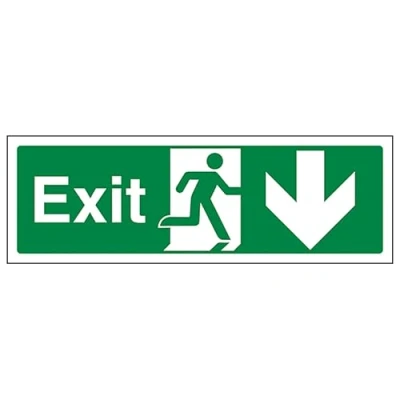V Safety Exit Arrow Down Landscape 450 x 150 mm Self Adhesive Vinyl Aluminium Effect Sign