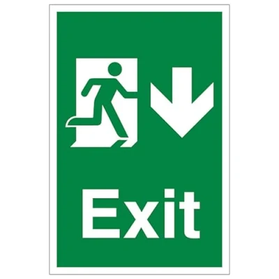 V Safety Exit Arrow Down Portrait 200 x 300 mm Self Adhesive Vinyl Sign