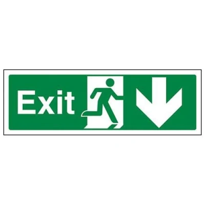 V Safety Exit Arrow Down Sign 450mm x 150mm 2mm Rigid Plastic
