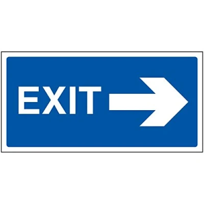 V Safety Exit Arrow Right Sign 600x300mm Blue Self Adhesive Vinyl