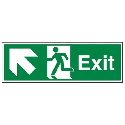 V Safety Exit Arrow Up Left Sign 600mm x 200mm 1mm Rigid Plastic