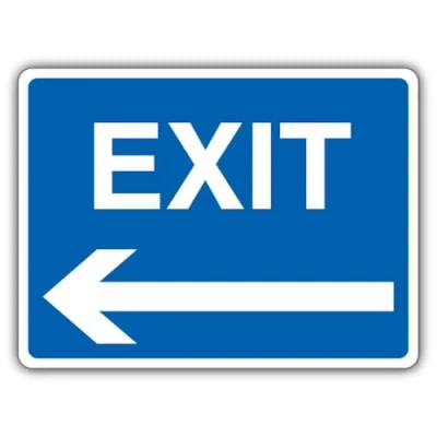 Wording & Purpose - Sign reads "Exit - Blue Arrow Left"; designed to clearly communicate essential site information. Material & Build - 3 mm aluminium composite (ACM) that is lightweight, rigid, weatherproof and resistant to rust and corrosion; retro-reflective finish that enhances night-time and long-range visibility in low-light conditions. Visibility & Legibility – Retro‑reflective finish improves night‑time visibility and long‑range detection under headlights and low‑light conditions. Compliance by Design – Manufactured to follow UK/EU safety-sign rules, using the correct EN ISO 7010 pictograms, shapes and colour coding, with layouts aligned to HSE Safety Signs & Signals Regulations (1996) and BS 5499 legibility principles for clear, consistent communication. Made in Britain – Manufactured in Britain using premium materials for dependable quality, durable finishes and fast turnaround; engineered for high‑traffic commercial settings.