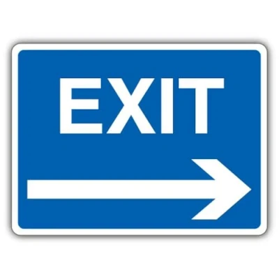 V Safety Exit Blue Arrow Right Sign 600 x 450 mm RA1 Reflective 3mm Aluminium Composite