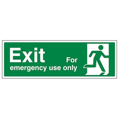 V Safety Exit For Emergency Use Only Right Landscape 450 x 150 mm Self Adhesive Vinyl Aluminium Effect Sign