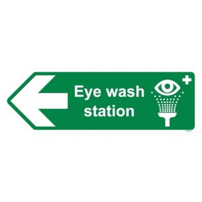 V Safety Eye Wash Station Arrow Left Shaped Sign 450 x 150 mm 2mm Super Tough Rigid Plastic
