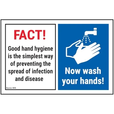 V Safety FACT! Good Hand Hygiene Is...Now Wash Your Hands! 150 x 100 mm Self Adhesive Vinyl Aluminium Effect Sign