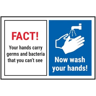 V Safety FACT! Your Hands Carry Germs...Now Wash Hands! 150 x 100 mm 3mm Aluminium Composite Sign