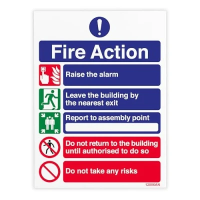 V Safety Fire Action Do Not Return/Do Take Risks Sign 150 x 200 mm Self Adhesive Monomeric Vinyl