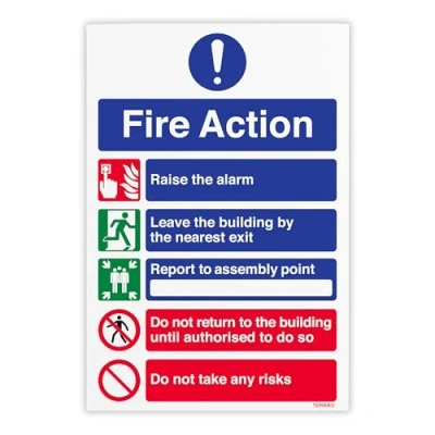 V Safety Fire Action Do Not Return/Do Take Risks Sign 200 x 300 mm Self Adhesive Monomeric Vinyl