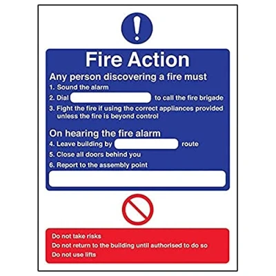 V Safety Fire Action General Dial 300 x 400 mm Sign