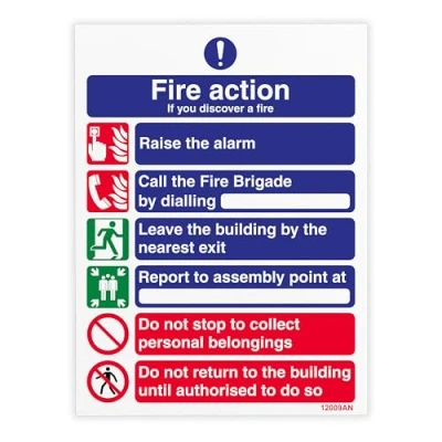 V Safety Fire Action If You Discover A Sign 150 x 200 mm Self Adhesive Monomeric Vinyl